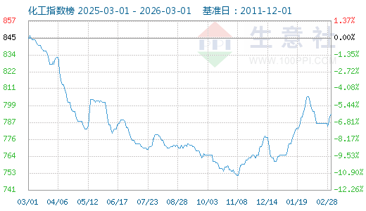 2月2日生意社化工指數(shù)為803