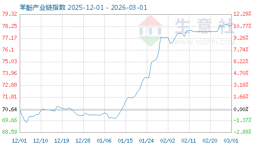 3月1日生意社苯酚產(chǎn)業(yè)鏈指數(shù)為78.33