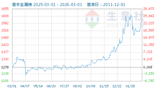 3月1日生意社基本金屬指數(shù)為1574