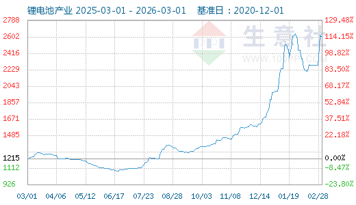 3月1日生意社鋰電池產(chǎn)業(yè)指數(shù)為2607