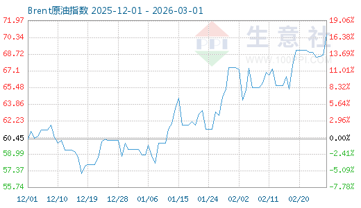 3月1日生意社Brent原油指數(shù)為70.62,與昨日持平,較周期內最高點124.02點(2022-03-09)下降了43.06%,較2020年04月22日最低點18.73點上漲了277.04%。(注:周期指2014-09-01至今)