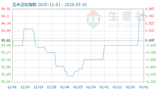 3月1日生意社玉米淀粉指數(shù)為94.34