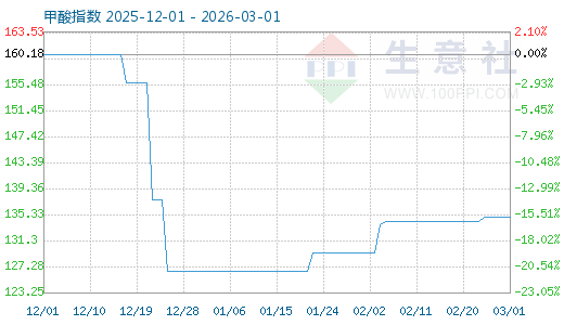 3月1日生意社甲酸指數(shù)為134.86