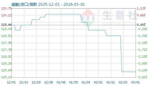 3月1日生意社硼酸(進口)指數(shù)為115.60