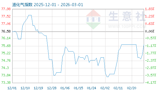 3月1日生意社液化氣指數(shù)為75.77