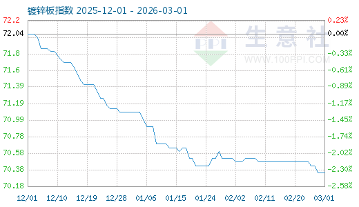 3月1日生意社鍍鋅板指數(shù)為70.35
