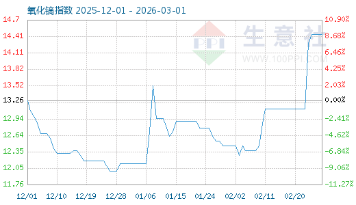 3月1日生意社氧化鏑指數(shù)為14.46,與昨日持平,較周期內(nèi)最高點100.00點(2011-09-01)下降了85.54%,較2017年12月20日最低點10.13點上漲了42.74%。(注:周期指2011-09-01至今)