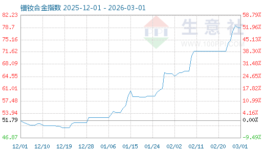 3月1日生意社鐠釹合金指數(shù)為78.57