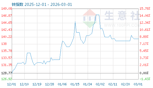 3月1日生意社鋅指數(shù)為139.60