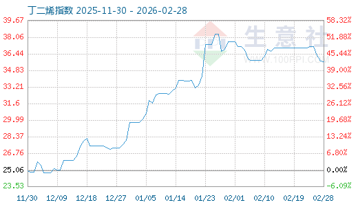 3月1日生意社丁二烯指數(shù)為35.69