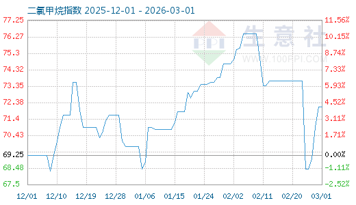 3月1日生意社二氯甲烷指數(shù)為72.12