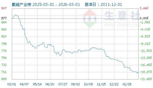 3月1日生意社氯堿指數(shù)為709