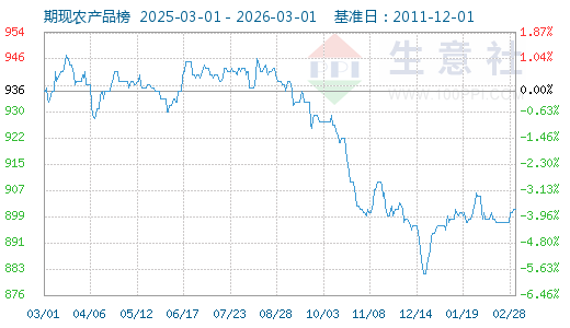2月14日生意社期現(xiàn)農(nóng)產(chǎn)品指數(shù)為897