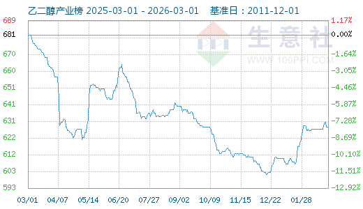 2月7日生意社乙二醇產(chǎn)業(yè)指數(shù)為626