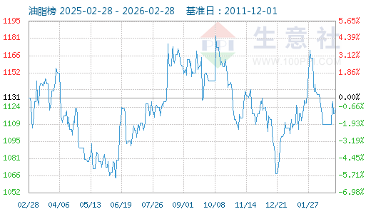 年度報(bào)告| 指數(shù)表| 查看周K線(xiàn)2月14日生意社油脂指數(shù)為1109