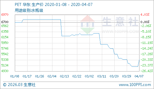 04月07日PET價(jià)格5350.00元/噸 5天上漲4.90%