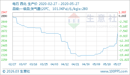 05月27日電石2652.50元/噸 5天上漲7.83%