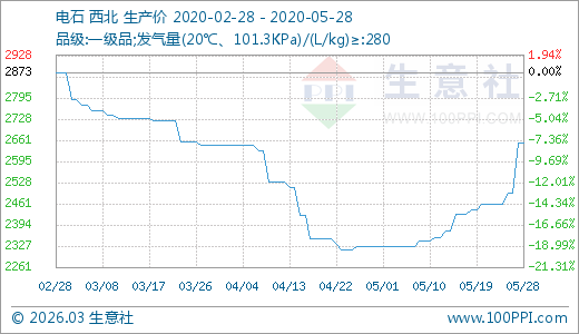 05月28日電石2652.50元/噸 5天上漲7.83%