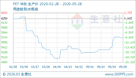 05月28日PET價格5700.00元/噸 10天上漲5.07%