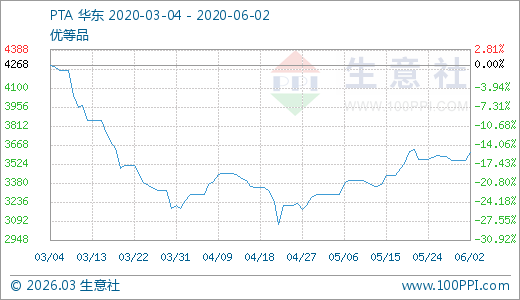 06月02日PTA價(jià)格3608.89元/噸 20天上漲7.62%