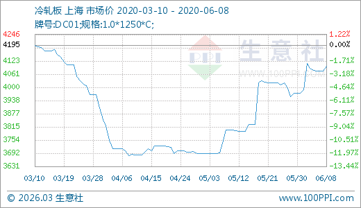 06月08日冷軋板4097.50元/噸 60天上漲11.12%