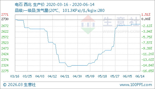 06月14日電石2690.00元/噸 20天上漲7.89%