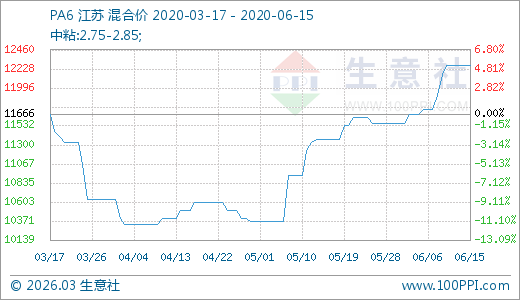 PA6 06月15日最新價格12266.67元/噸,最近60天上漲16.83%。