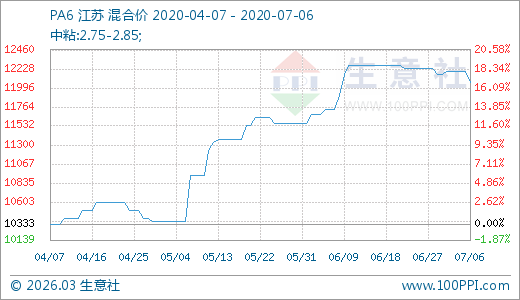 PA6 07月06日最新價格12066.67元/噸,最近60天上漲10.37%。