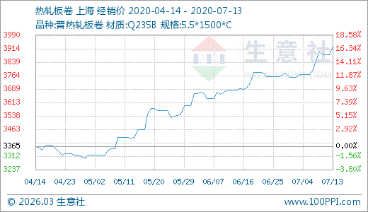 07月13日熱軋板卷3927.50元/噸 60天上漲14.84%
