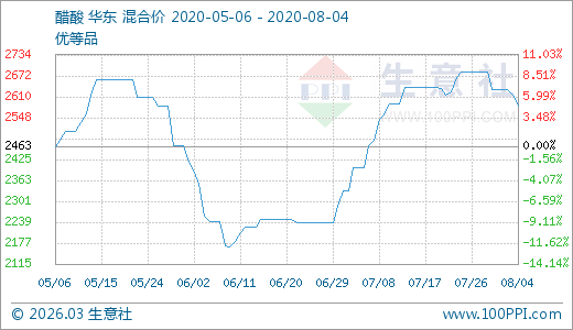 08月04日醋酸2583.33元/噸 60天上漲15.33%