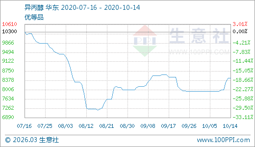 10月14日異丙醇8466.67元/噸 5天上漲6.72%