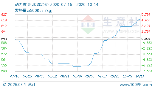 10月14日動(dòng)力煤621.25元/噸 60天上漲11.14%