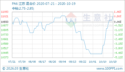 10月19日PA6價(jià)格11033.33元/噸 10天上漲5.75%