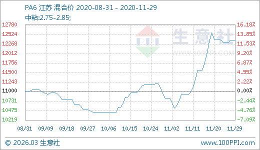 11月29日PA6價(jià)格12366.67元/噸 20天上漲13.46%