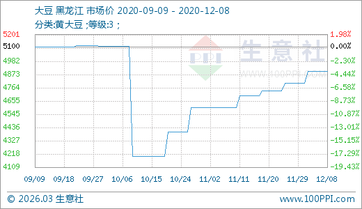 大豆12月08日最新價格4900.00元/噸,最近60天上漲16.67%。