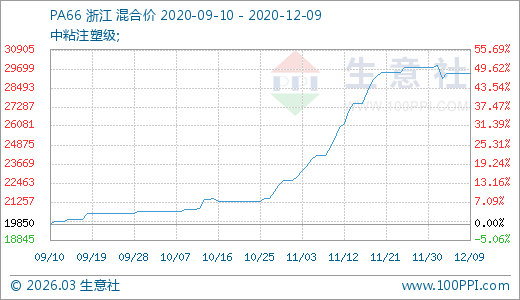 PA66 12月09日最新價格29400.00元/噸,最近30天上漲19.03%,60天上漲41.69%。