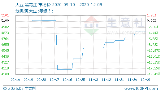 12月09日大豆4900.00元/噸 60天上漲16.67%