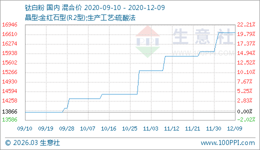 12月09日鈦白粉16666.67元/噸 60天上漲16.28%