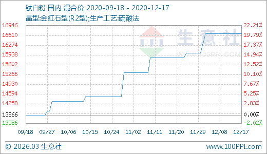 12月17日鈦白粉16666.67元/噸 60天上漲14.94%