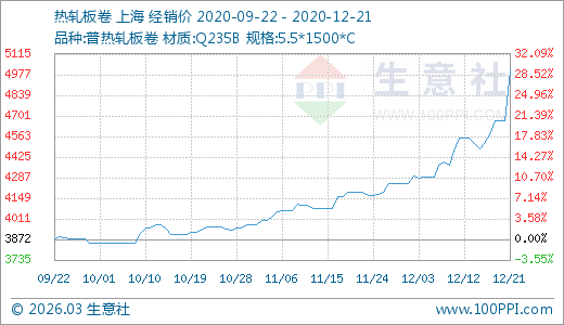 12月21日熱軋板卷5000.00元/噸 5天上漲10.68%
