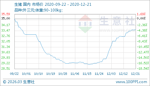12月21日生豬33.60元/公斤 20天上漲9.37%