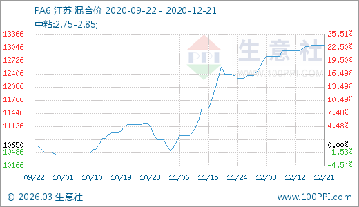 12月21日PA6價(jià)格13100.00元/噸 60天上漲17.31%