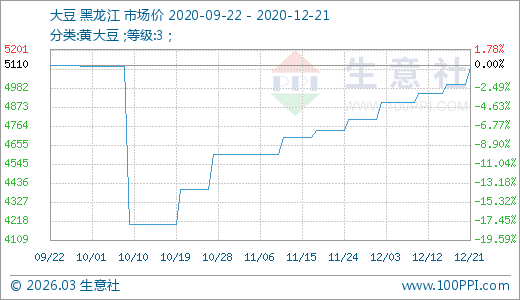 12月21日大豆5100.00元/噸 60天上漲15.91%