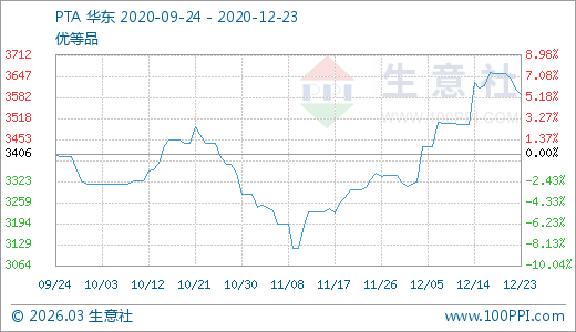 PTA 12月23日最新價格3592.22元/噸,最近20天上漲8.08%。