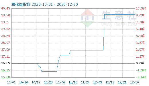 12月30日氧化鐠商品指數(shù)為40.06,與昨日持平,較周期內(nèi)最高點(diǎn)105.68點(diǎn)(2011-09-27)下降了62.09%,較2020年06月08日最低點(diǎn)32.95點(diǎn)上漲了21.58%。(注:周期指2011-09-01至今)