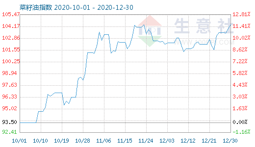 12月30日菜籽油商品指數(shù)為104.39