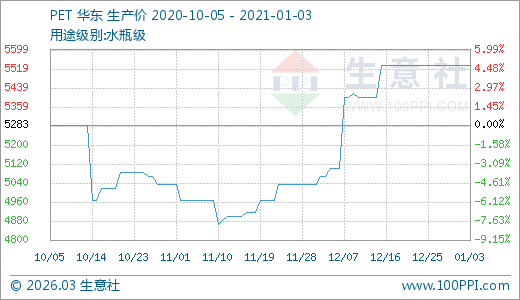 01月03日PET價格5533.33元/噸 60天上漲11.41%