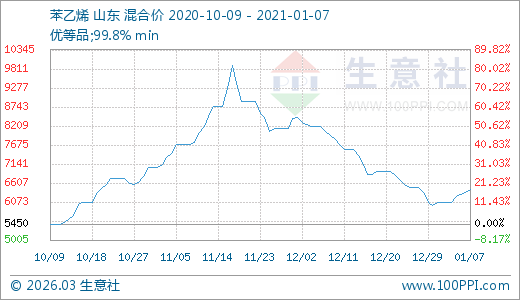 01月07日苯乙烯6433.33元/噸 5天上漲6.04%