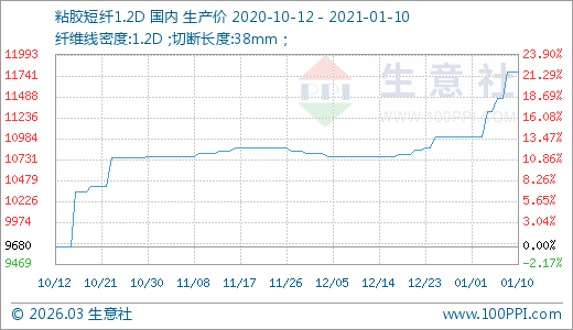 01月10日粘膠短纖11783.33元/噸 5天上漲4.20%