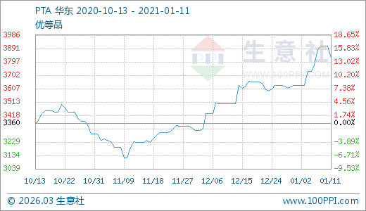 01月11日PTA價格3823.89元/噸 10天上漲5.37%